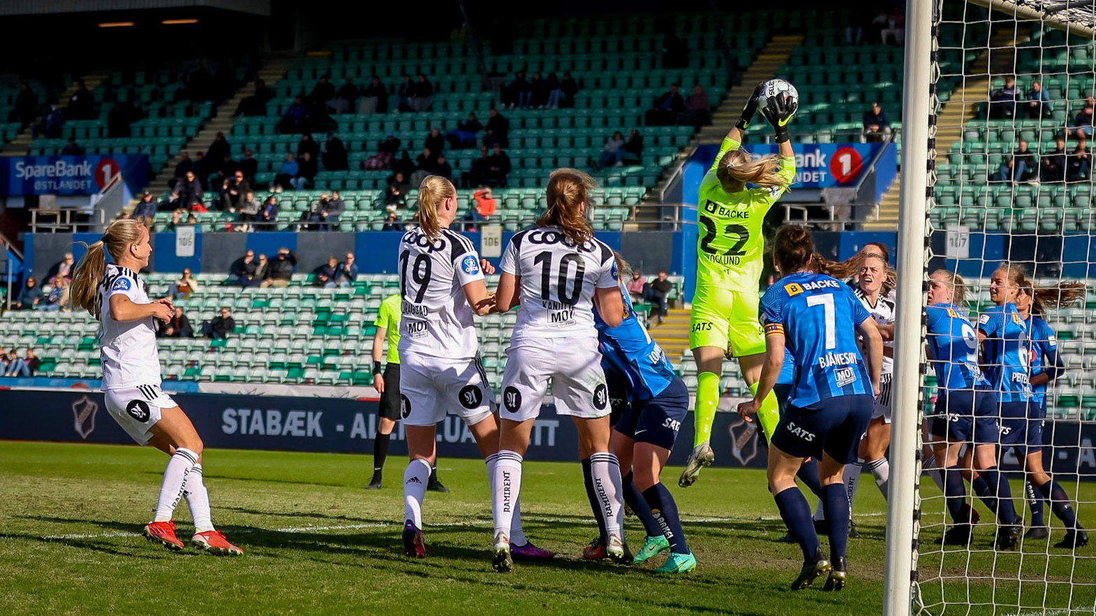 Stabæks keeper Sunniva Skoglund er meget fornøyd etter reduseringen til 3-2