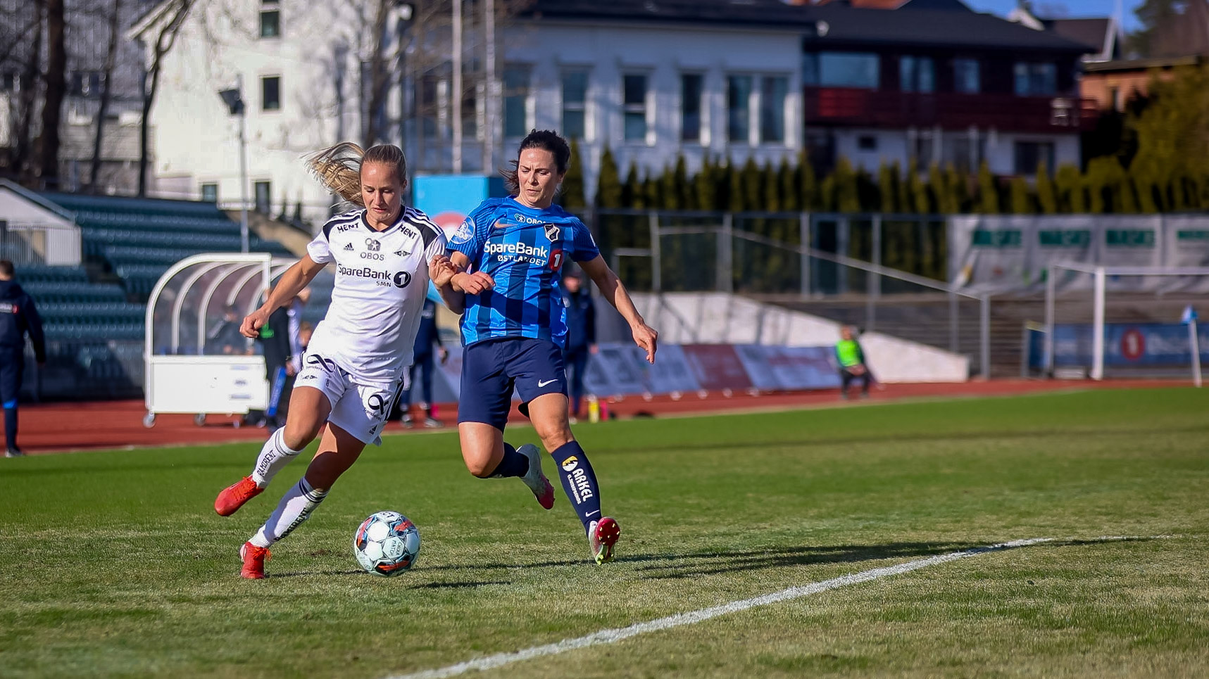 Rosenborgs kaptein Mali Lilleås Næss i duell med Linn Huseby fra Stabæk